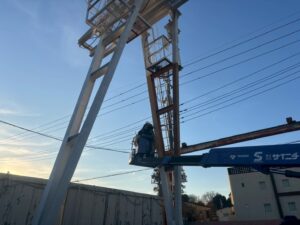 今回は高所作業車を使用し、安全対策を徹底したうえで施工しております。